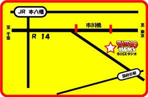 東京方面からの場合は、市川橋を渡ってからすぐ左です。200メートルほど先の左側の1Fです。電車の場合は、京成国府台えきより徒歩3分。