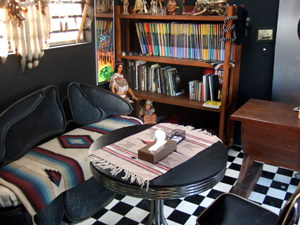 ブラックとホワイトで、ゆっくりデザインを相談できる待合です。