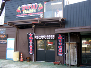 スタジオの入り口です。柏方面から来たらこの看板を目印におこしください
