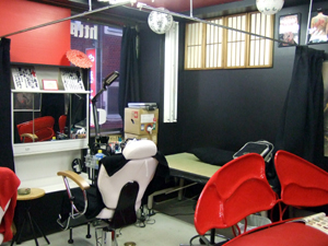 イス、ベッド、両方完備し黒のイメージのブースです